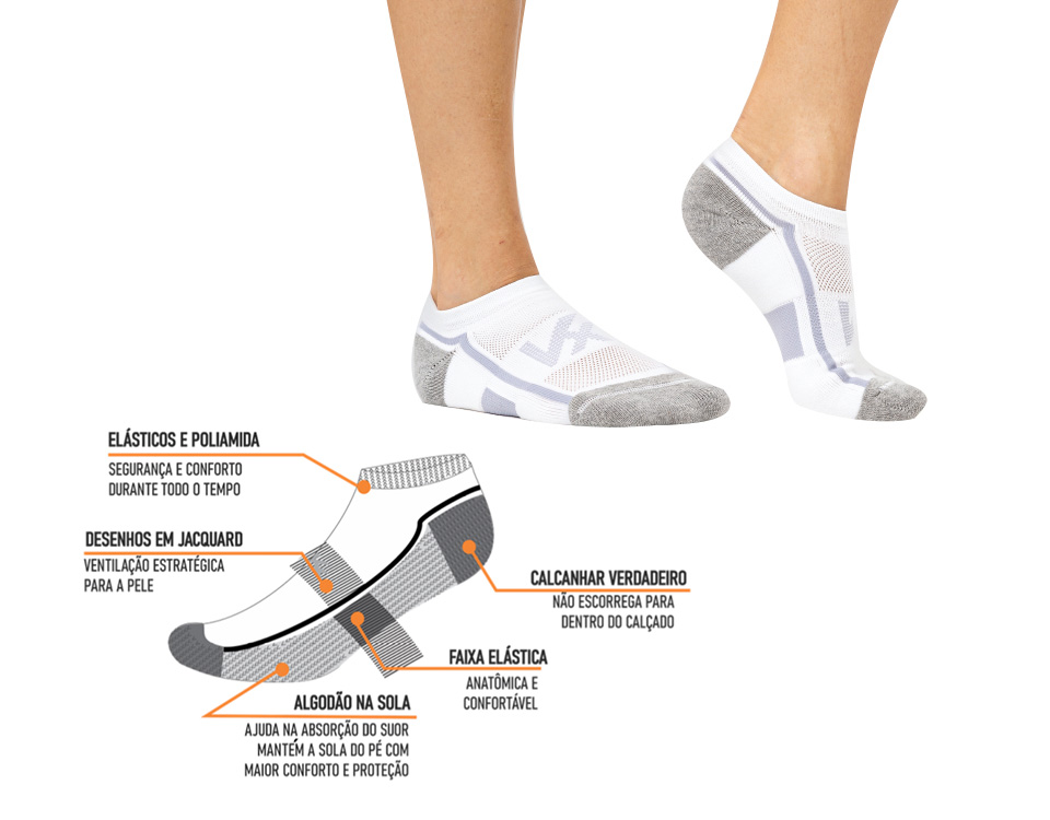 Calcanhar Verdadeiro: Evita que a meia escorregue para dentro do calçado, oferecendo maior estabilidade.